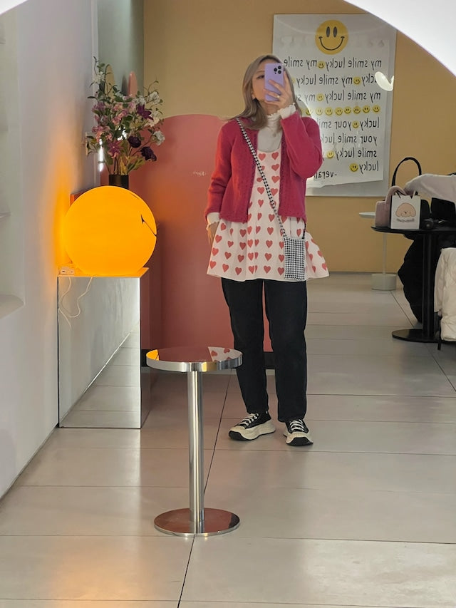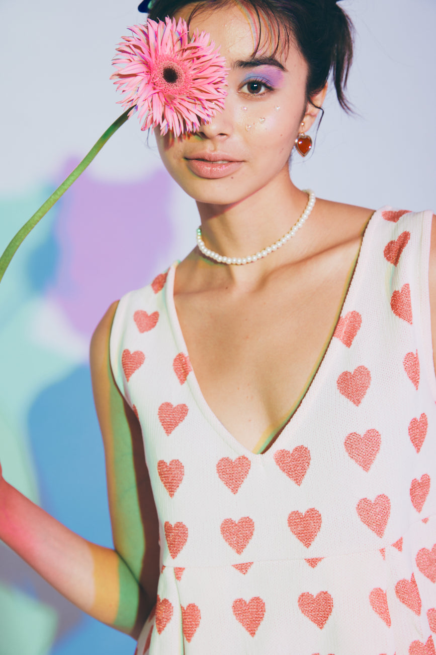 Knit Dress (2-Way) | Red / Hearts